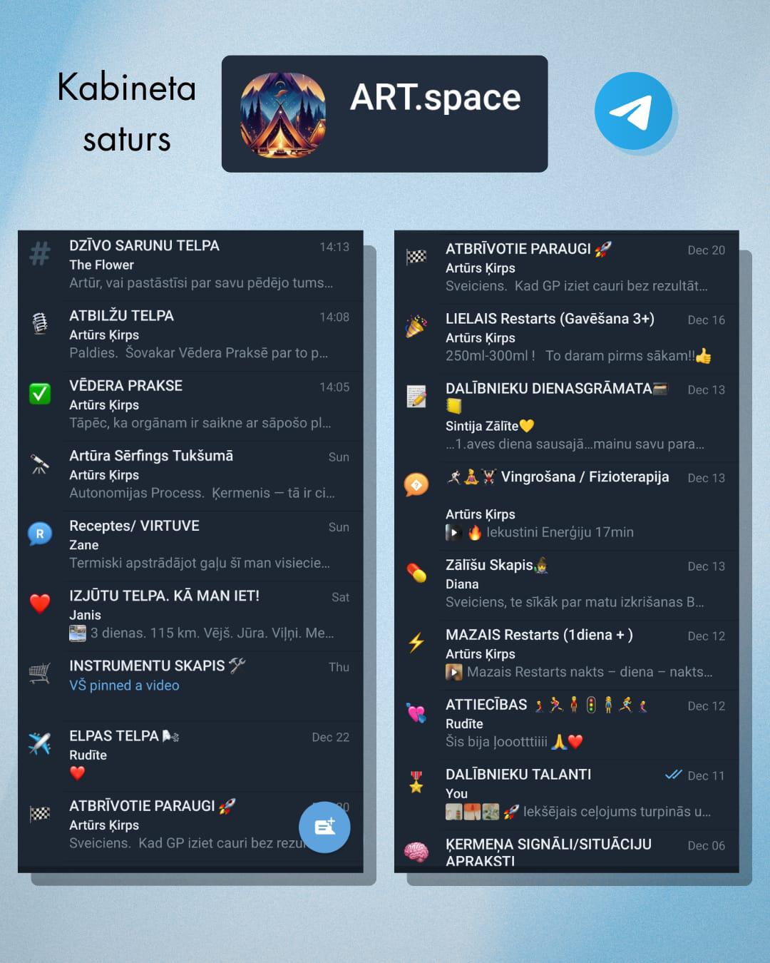 Artūra ON-LINE kabinets ART.space ir telpa, kur mācīties un saņemt atbildes no Artūra un atbalsis no cilvēkiem, kuri virzās turpat, kur, iespējams, vēlies nokļūt Tu.