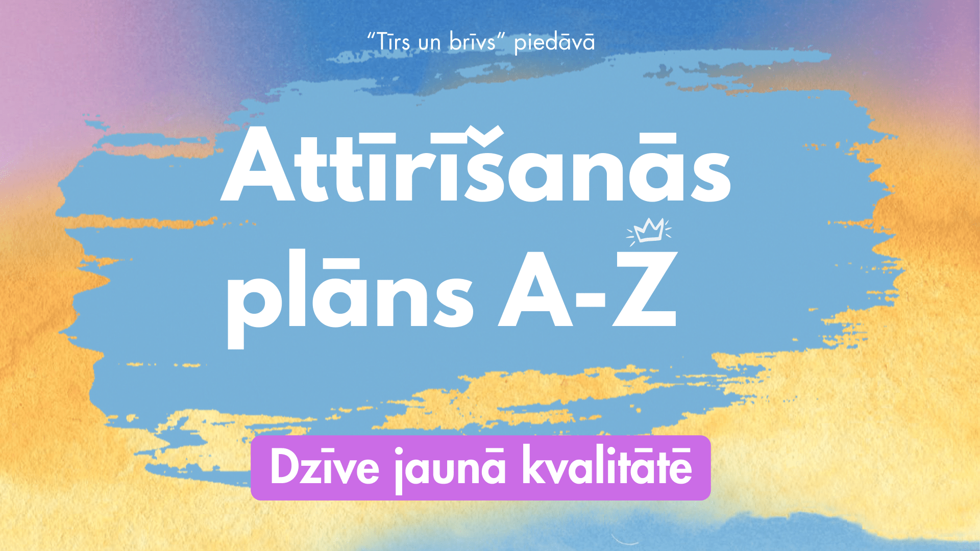 Attīrīšanās plāns A-Z – iztīri ķermeni no liekā un atgūsti prāta skaidrību. Informatīvi praktiskais kurss, kur soli pa solim pieredzēsi pāreju no slimošanas, atkarībām, neziņas un smaguma uz emocionālo stabilitāti, drosmi rīkoties un patiesu mieru. (pilnā vērtība €60)