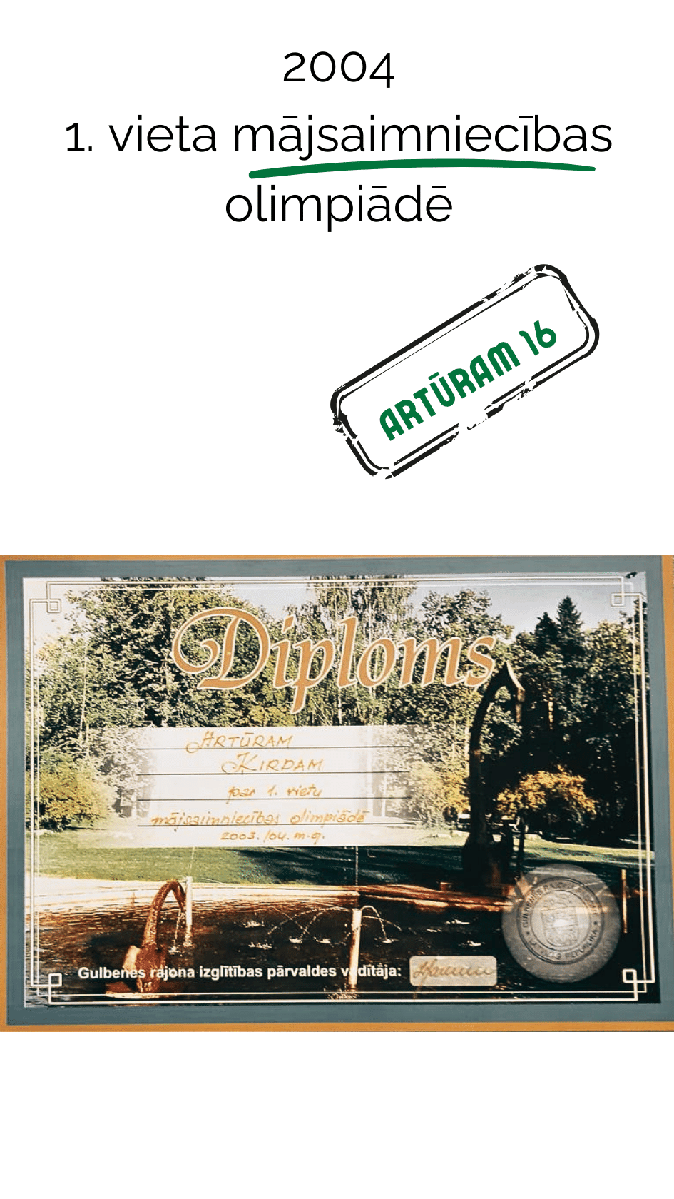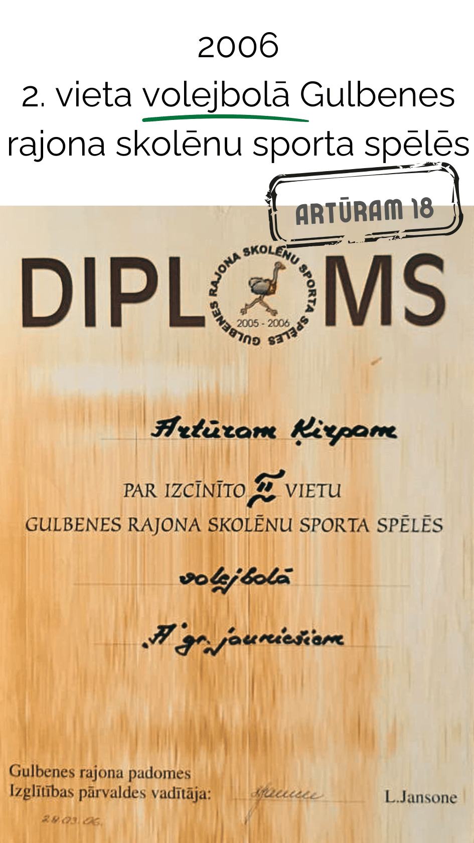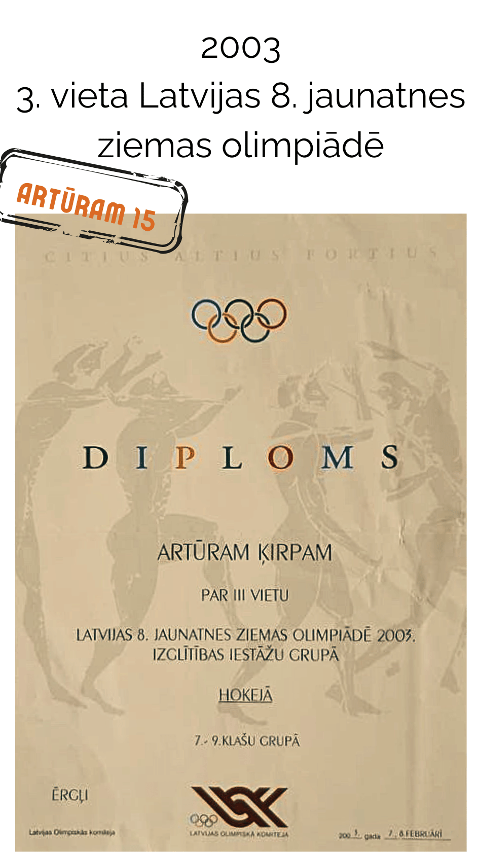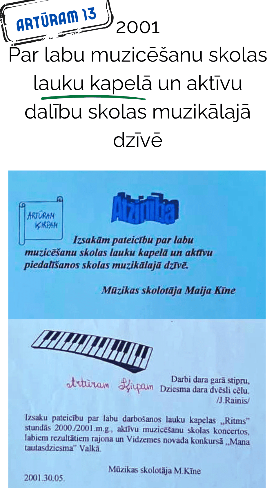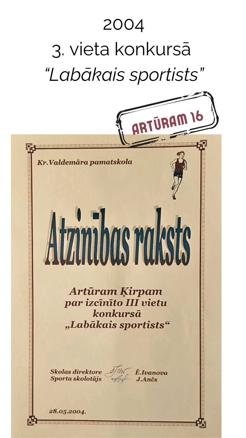 Artūra Ķirpa vecāku rūpīgi glabātie dēla diplomi liecina, ka pirmo diplomu Artūrs saņēmis septiņu gadu vecumā, izgudrojot kādas konfektes nosaukumu. Kopumā vecāku izveidotajā arhīvā ir 90 diplomi, atzinības raksti, sertifikāti, apliecinājumi, apbalvojumi un citas godalgas, kas gluži kā starmeši izgaismo Artūra dzīves pagriezienus, nebeidzamo radītkāri un urdošo vēlmi paplašināties. Nu Artūra diplomu arhīvs ieguvis digitālu veidolu. Šķita negodīgi šīs pērles turēt bēniņos.