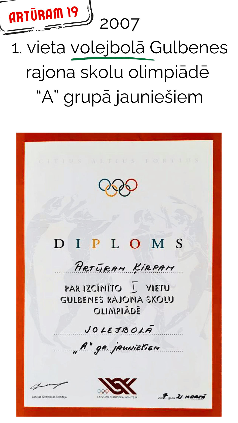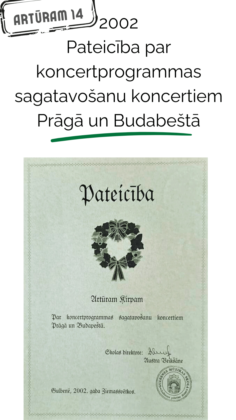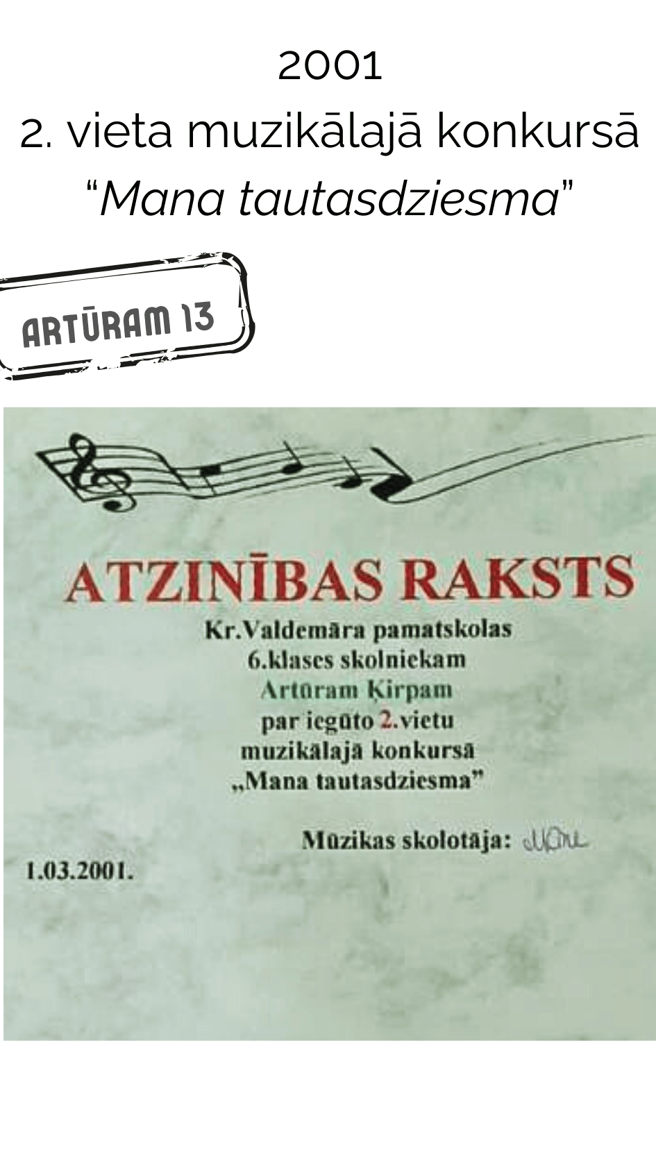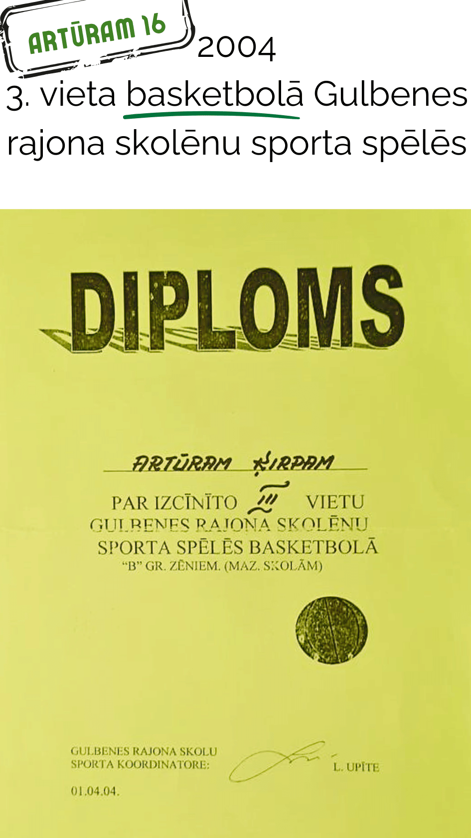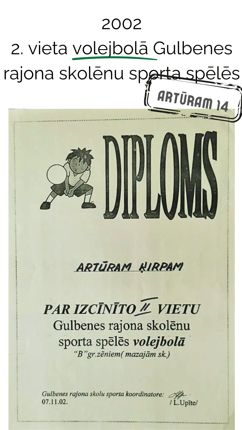 Artūra Ķirpa vecāku rūpīgi glabātie dēla diplomi liecina, ka pirmo diplomu Artūrs saņēmis septiņu gadu vecumā, izgudrojot kādas konfektes nosaukumu. Kopumā vecāku izveidotajā arhīvā ir 90 diplomi, atzinības raksti, sertifikāti, apliecinājumi, apbalvojumi un citas godalgas, kas gluži kā starmeši izgaismo Artūra dzīves pagriezienus, nebeidzamo radītkāri un urdošo vēlmi paplašināties. Nu Artūra diplomu arhīvs ieguvis digitālu veidolu. Šķita negodīgi šīs pērles turēt bēniņos.