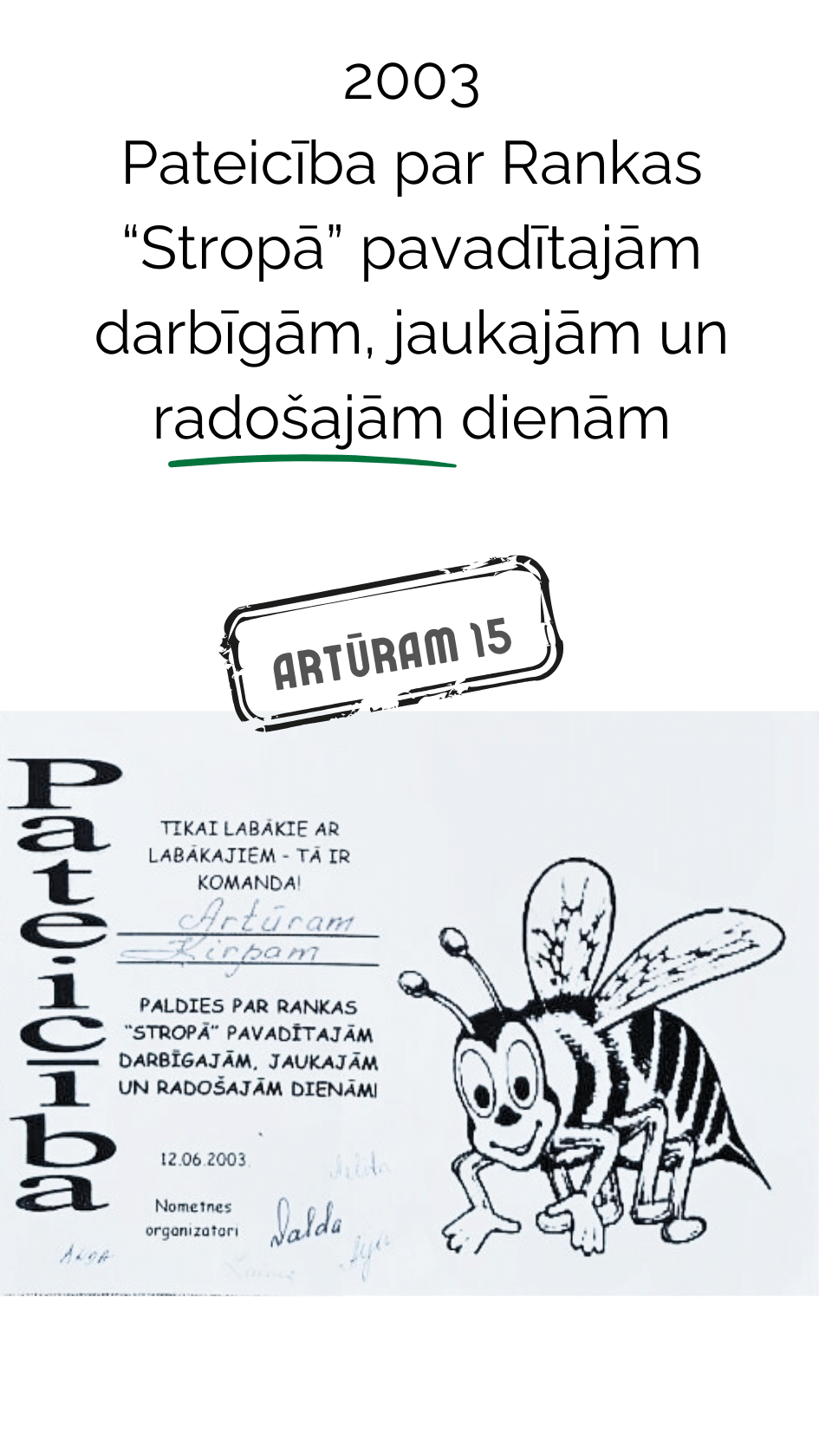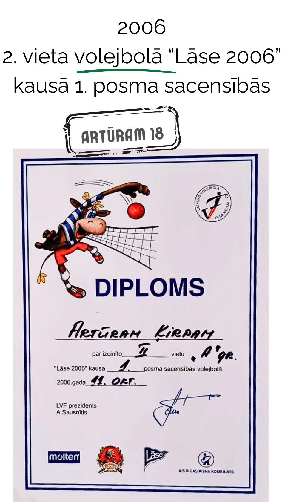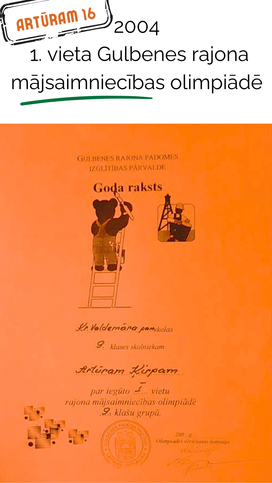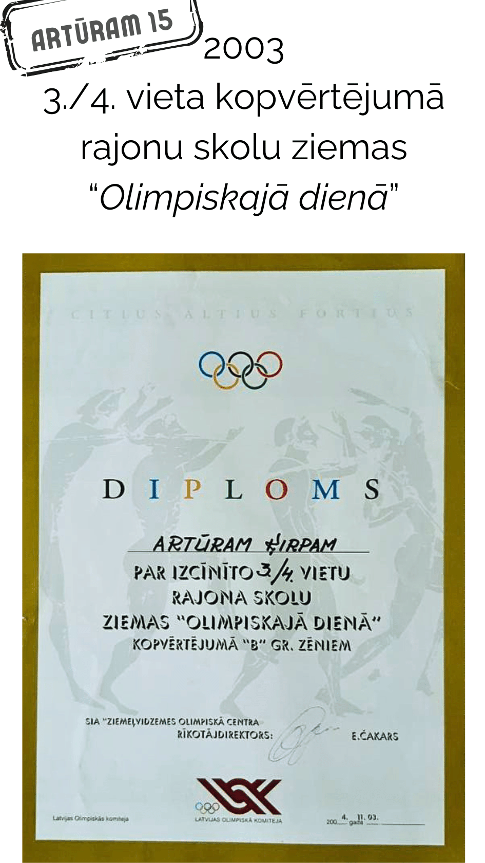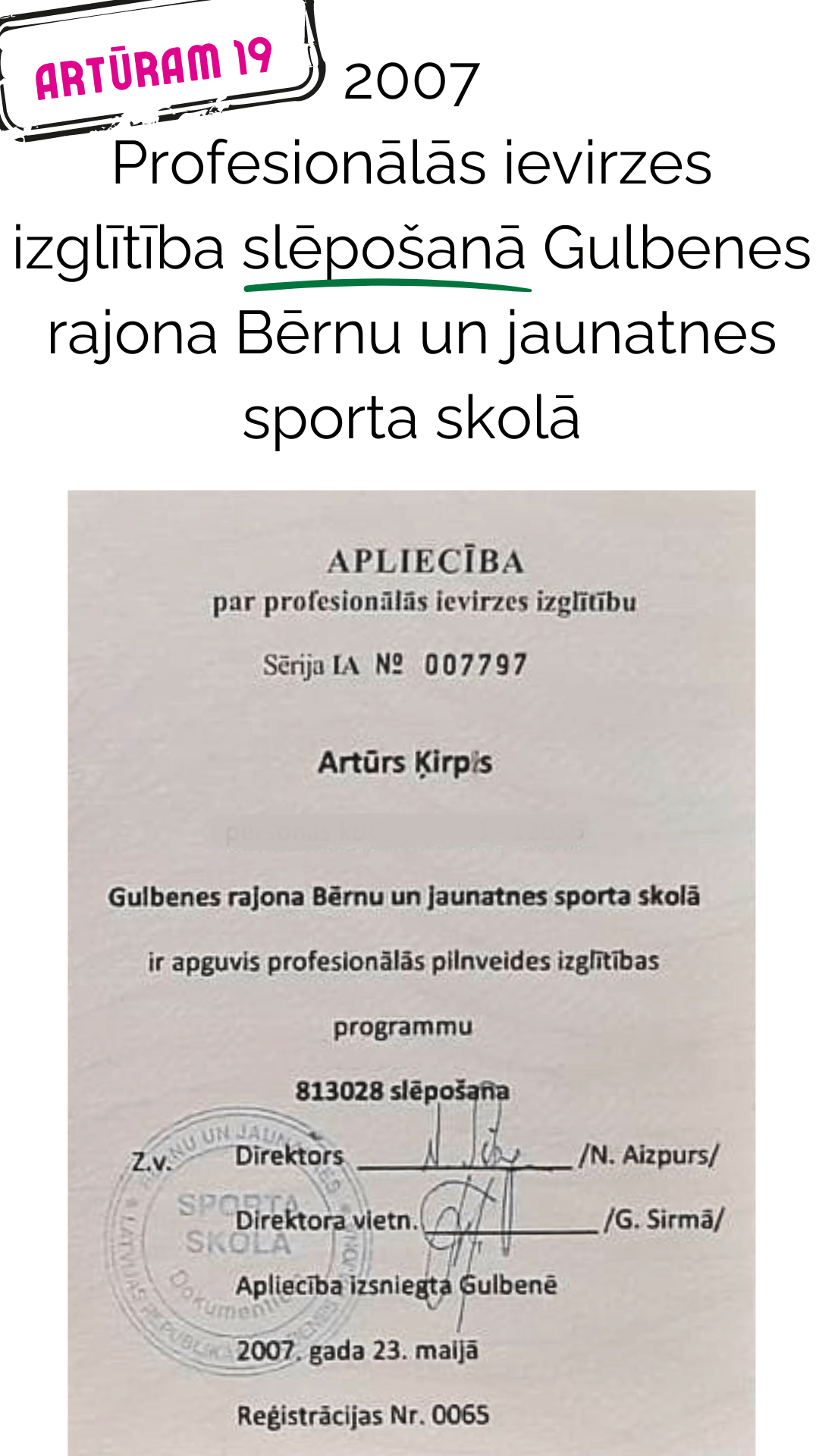 Artūra Ķirpa vecāku rūpīgi glabātie dēla diplomi liecina, ka pirmo diplomu Artūrs saņēmis septiņu gadu vecumā, izgudrojot kādas konfektes nosaukumu. Kopumā vecāku izveidotajā arhīvā ir 90 diplomi, atzinības raksti, sertifikāti, apliecinājumi, apbalvojumi un citas godalgas, kas gluži kā starmeši izgaismo Artūra dzīves pagriezienus, nebeidzamo radītkāri un urdošo vēlmi paplašināties. Nu Artūra diplomu arhīvs ieguvis digitālu veidolu. Šķita negodīgi šīs pērles turēt bēniņos.